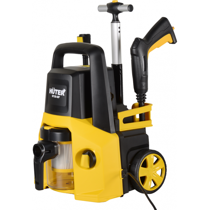 Прибор Huter W150-MF – уникальная модель, которая не имеет аналогов в России, так как объединяет в себе мойку высокого давления и пылесос. Отличается многофункциональностью, поскольку может использоваться для мытья автомобиля, очистки салона от загрязнений (сухой и влажной уборки) и в качестве воздуходува. Широкий набор аксессуаров существенно расширяет функционал. Мини-мойка комплектуется надежным металлическим насосом, а высокая производительность обусловлена мотором, мощность которого составляет 1700 Вт. Рабочее давление 100 бар, расход воды - 365 литров.